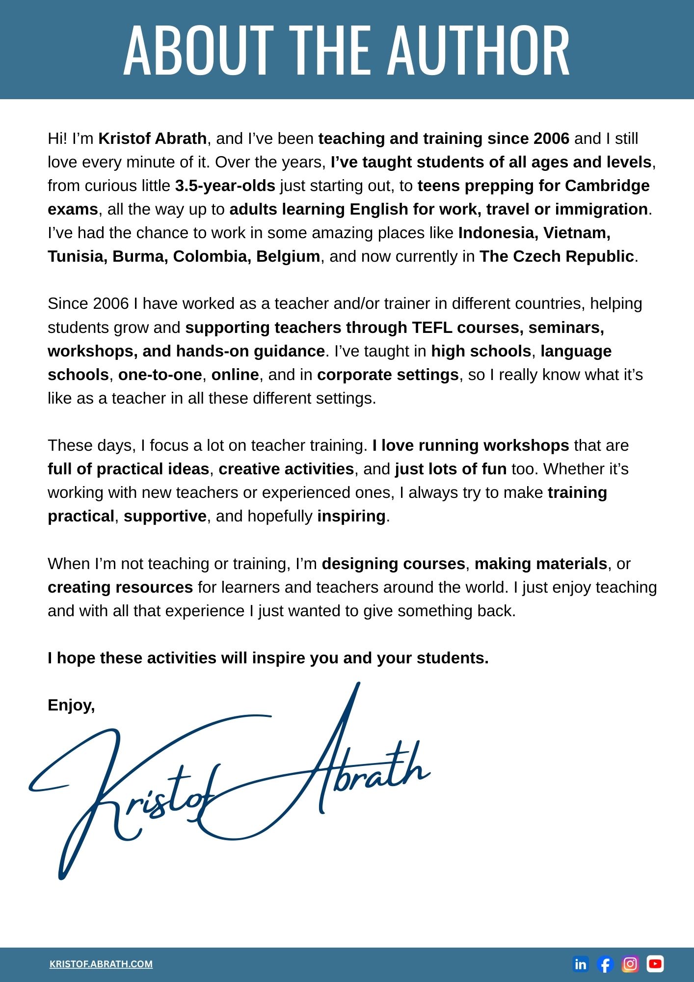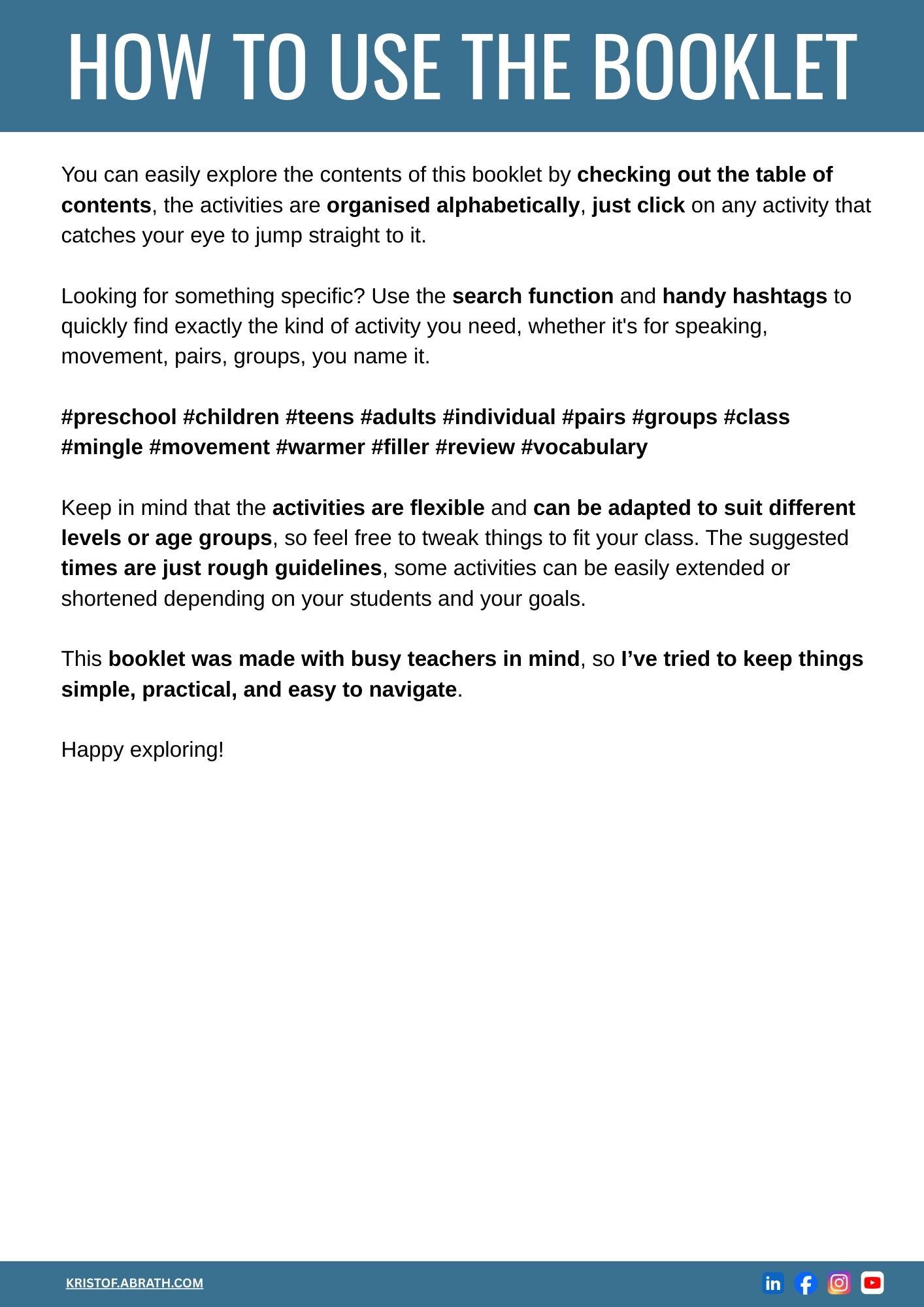 ✅ Designed for all ages and levels – especially preschool, primary and A0 to B1 Teens & Adult classes